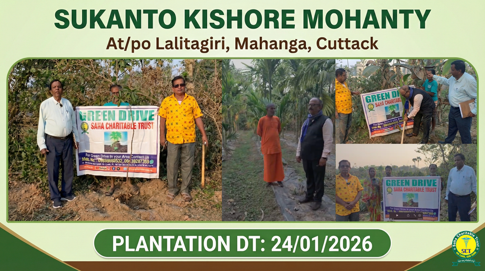 On 24th January 2026, a meaningful tree plantation initiative was carried out at At/Po Lalitagiri, Mahanga, Cuttack, under the support and involvement of Sukanto Kishore Mohanty.